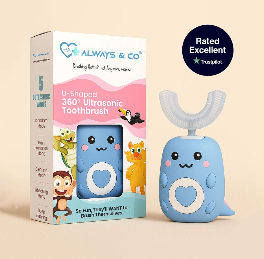 Getting your little one to brush their teeth shouldn’t feel like a daily fight. That’s why we created the Always&Co™ - Shaped 360 ° Ultrasonic Toothbrush— a gentle, fast solution that actually makes brushing fun.