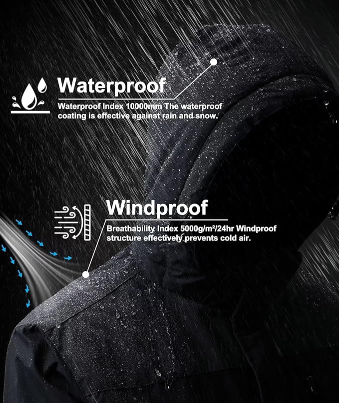 Advanced hydrophobic coating repels heavy snow and wet conditions, keeping you dry during extended outdoor use.