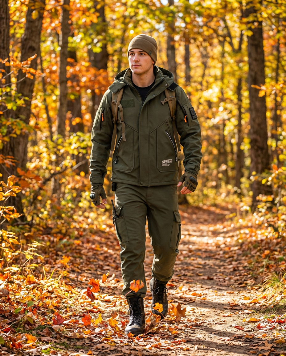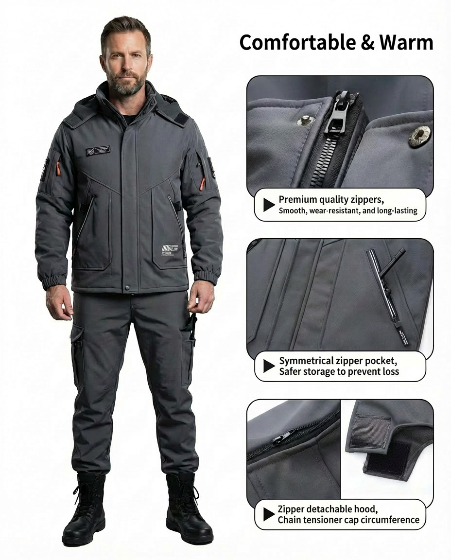 High-density fabric blocks icy wind while maintaining breathability to release heat and moisture during active movement.