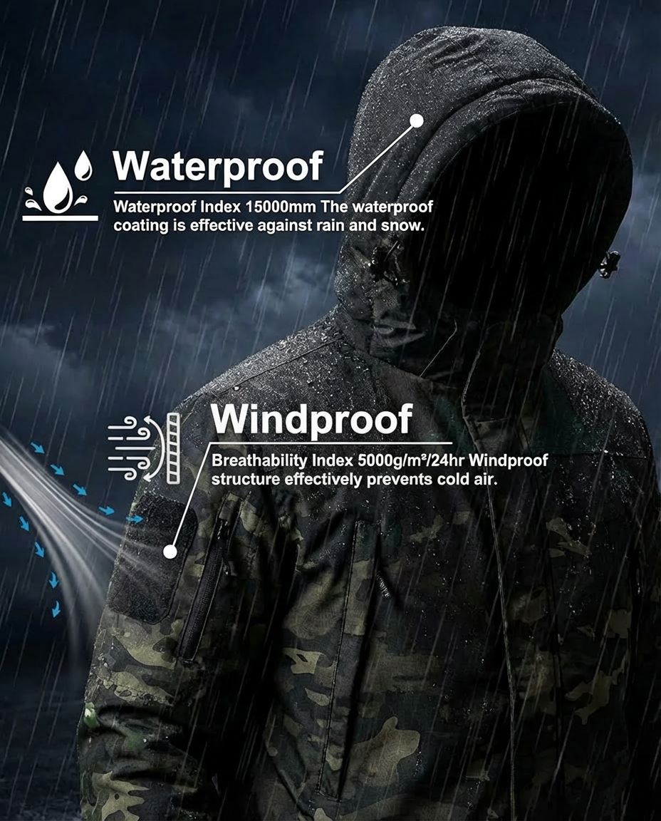 Advanced hydrophobic coating repels heavy snow and wet conditions, keeping you dry during extended outdoor use.